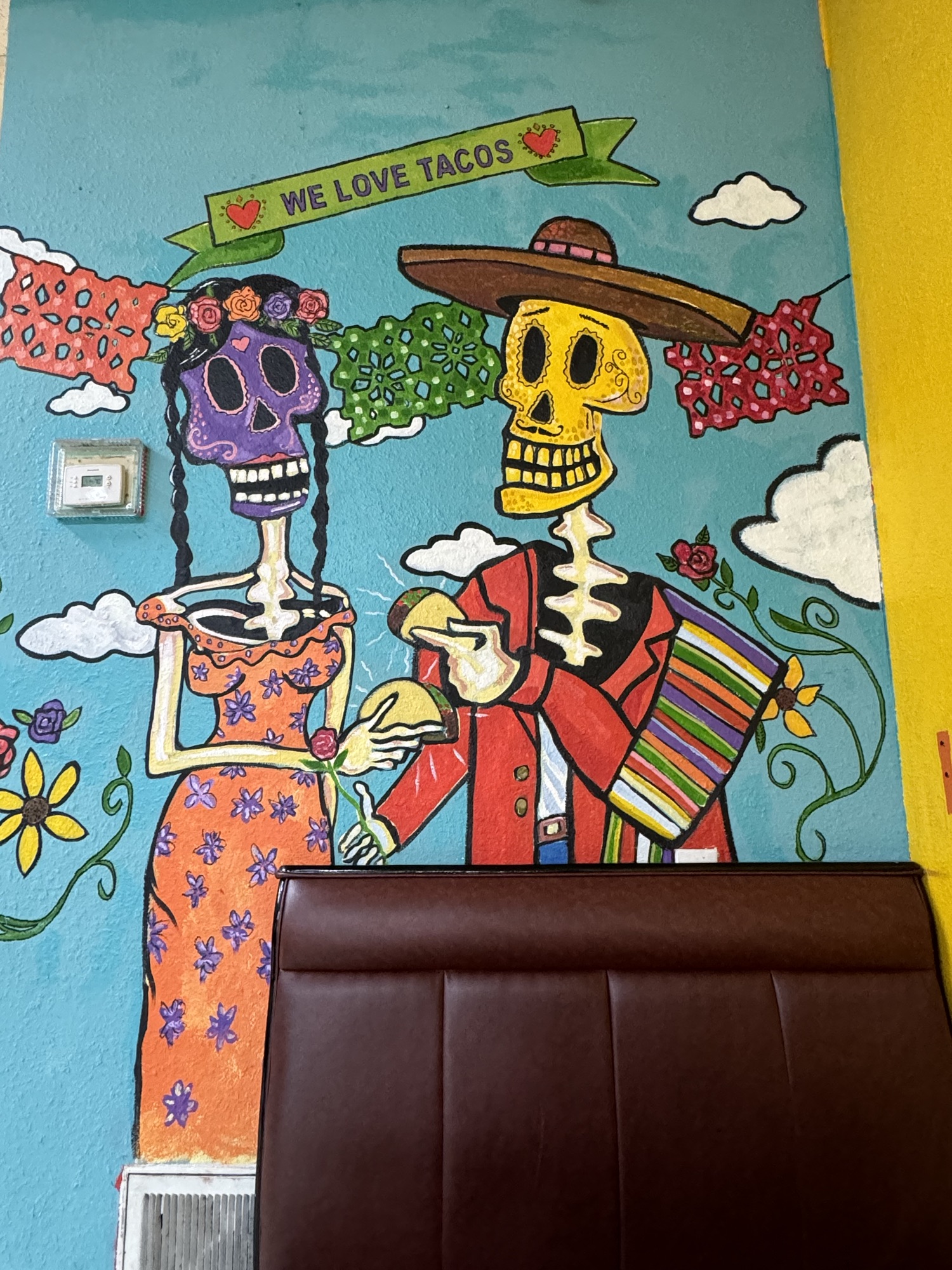 Review: Cool mural in this place. Great flautas. Only tried two different meats (not as many options as other places) but I enjoyed the tacos.