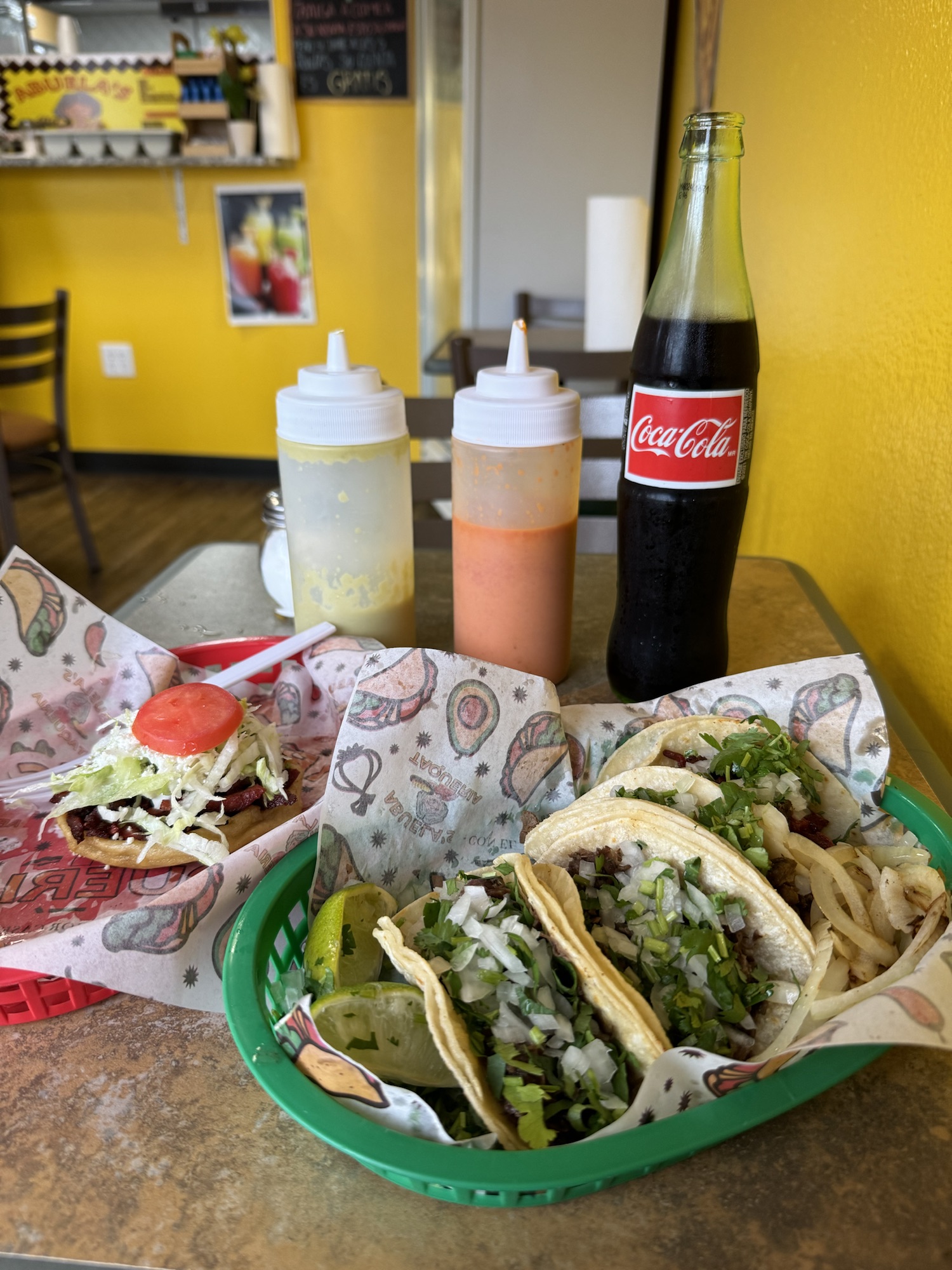 Review: I loved the mural on the side of the building. It is a small quaint spot that I first spotted while driving to another place a few days earlier. They had really solid meats, crispy and yummy pastor (almost like trompo). The salsa was pretty good too. salsa. The sope was good and crunchy, really enjoyed it.