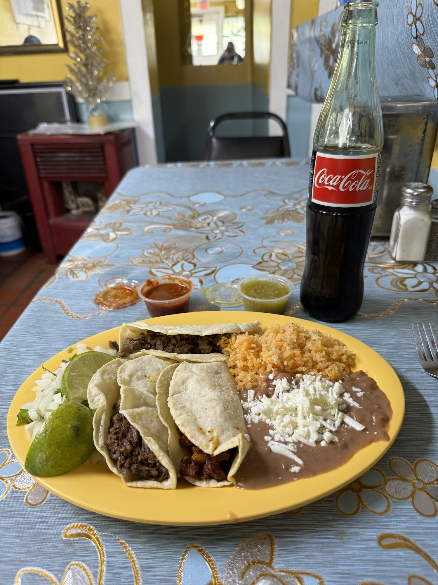 Review: Located on Jefferson Boulevard in Cockrell Hill near the roundabout. It’s a drive up hole in the wall kind of place. Totally passes the vibe check. It was super good. Everything was seasoned well. Really good tortillas, great beans and rice, nice spicy salsa. Please support them!