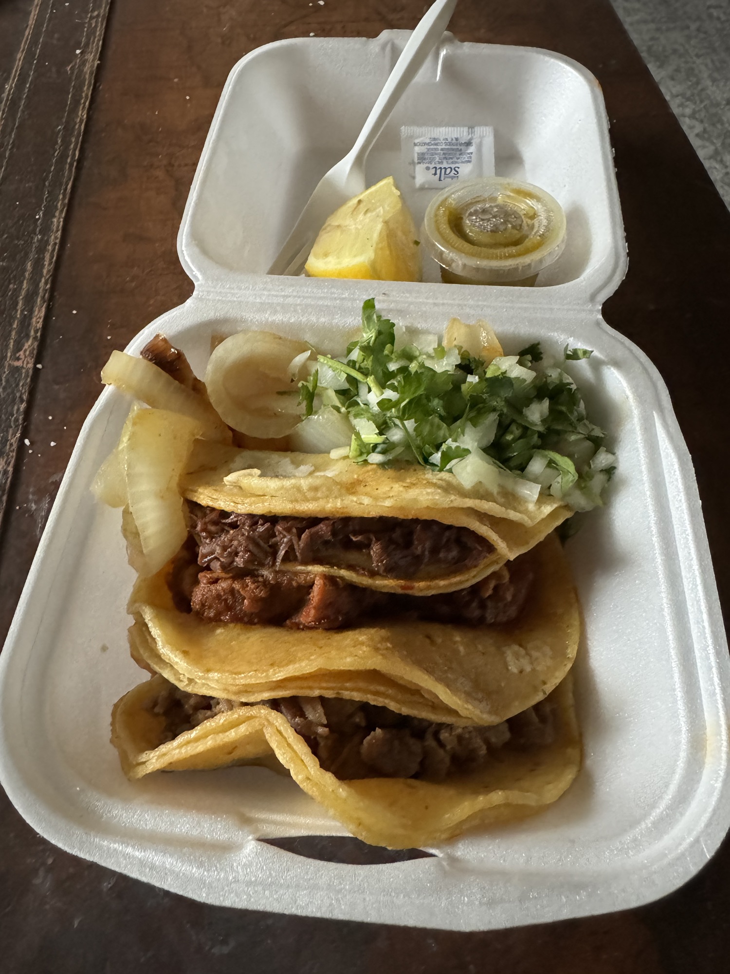 What I ordered: Tacos (fajita, barbacoa, al pastor)