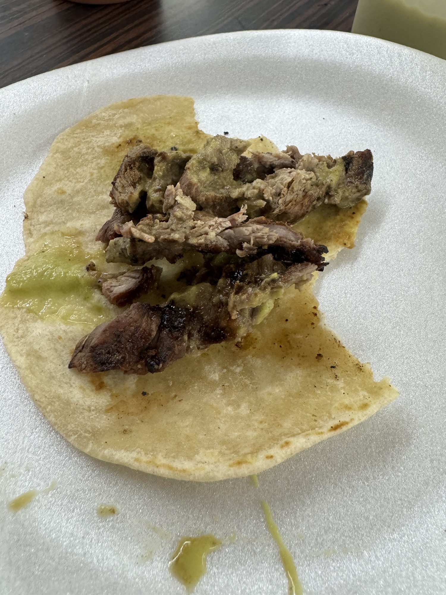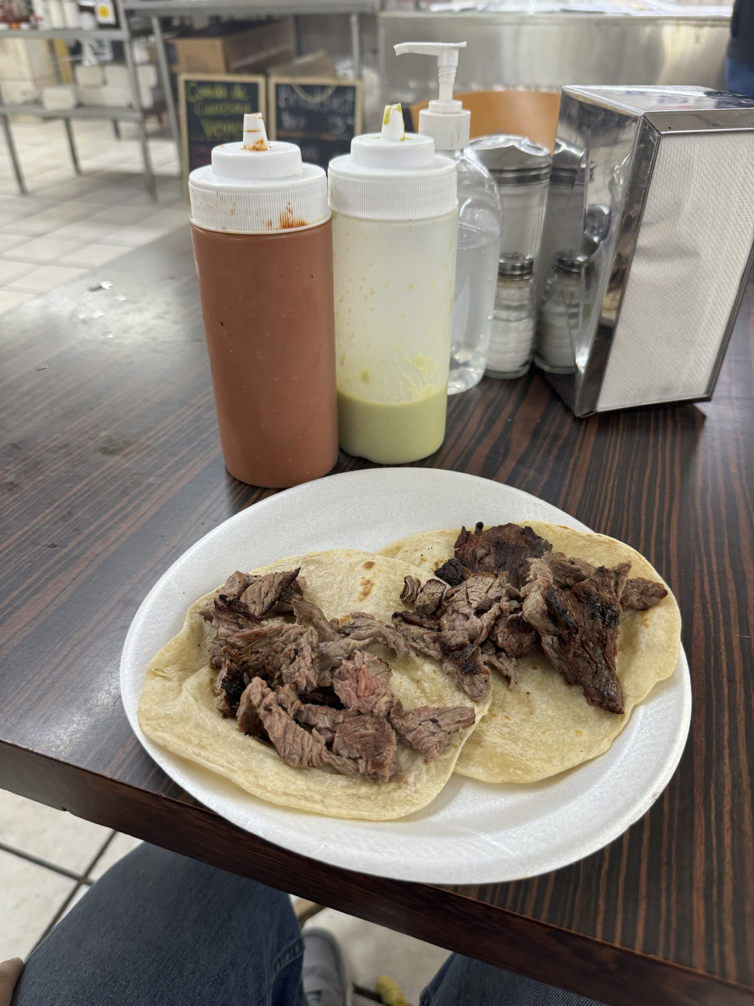 Review: This was so intriguing! They had a limited menu during my visit. I tried to order from the chalkboards, but the man said they only had fajita meat ready. Granted I went in on a Friday morning around 10:30 or 11 a.m. When I walked in the whole place was smokey-ish and smelled so good. You could tell the meat was freshly cooked and the tortillas were freshly made. Both were damn good. The salsa left a bit more to be desired and there was no garnish (onion, cilantro, etc. provided). Still, this is the kind of vibe I love. I really wish they had more options for me to try. I already want to go back.