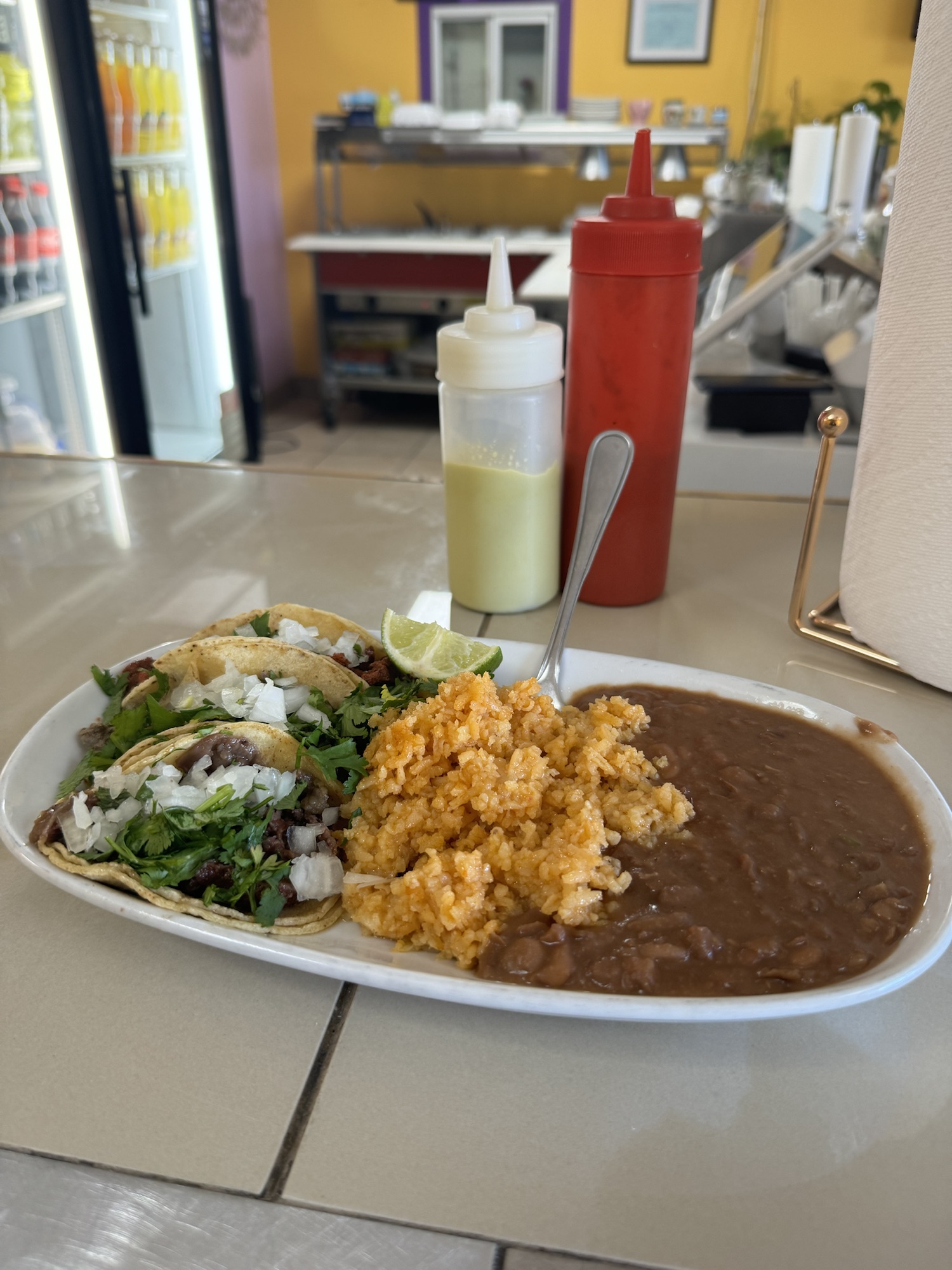 Review: This is a solid little place. They had a small lunch counter, and offered a nice plate of tacos + rice and beans for a special. Decent meat; I liked the pastor best. Good spicy salsa.
