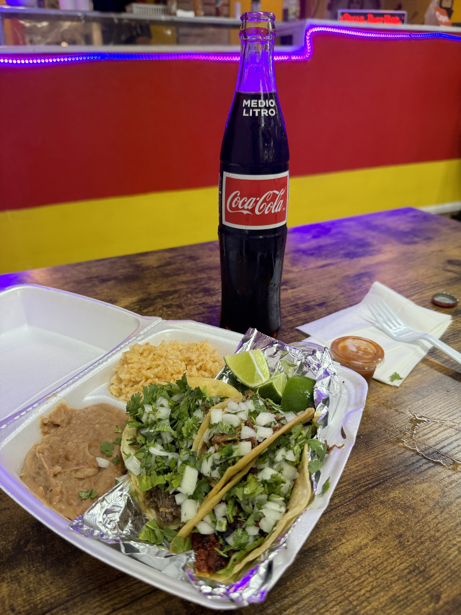 Review: Located in the back of Jerry’s Market, this was definitely a bit of a hole-in-the-wall. You had to buy drinks from the market but food from the restaurant. I ordered the taco plate, with barbacoa, carnitas and pastor on corn tortillas. The barbacoa and carnitas were quite good, but the pastor was disappointing. I liked the tortillas. They were cooked well with a little crisp. The staff was super friendly.
