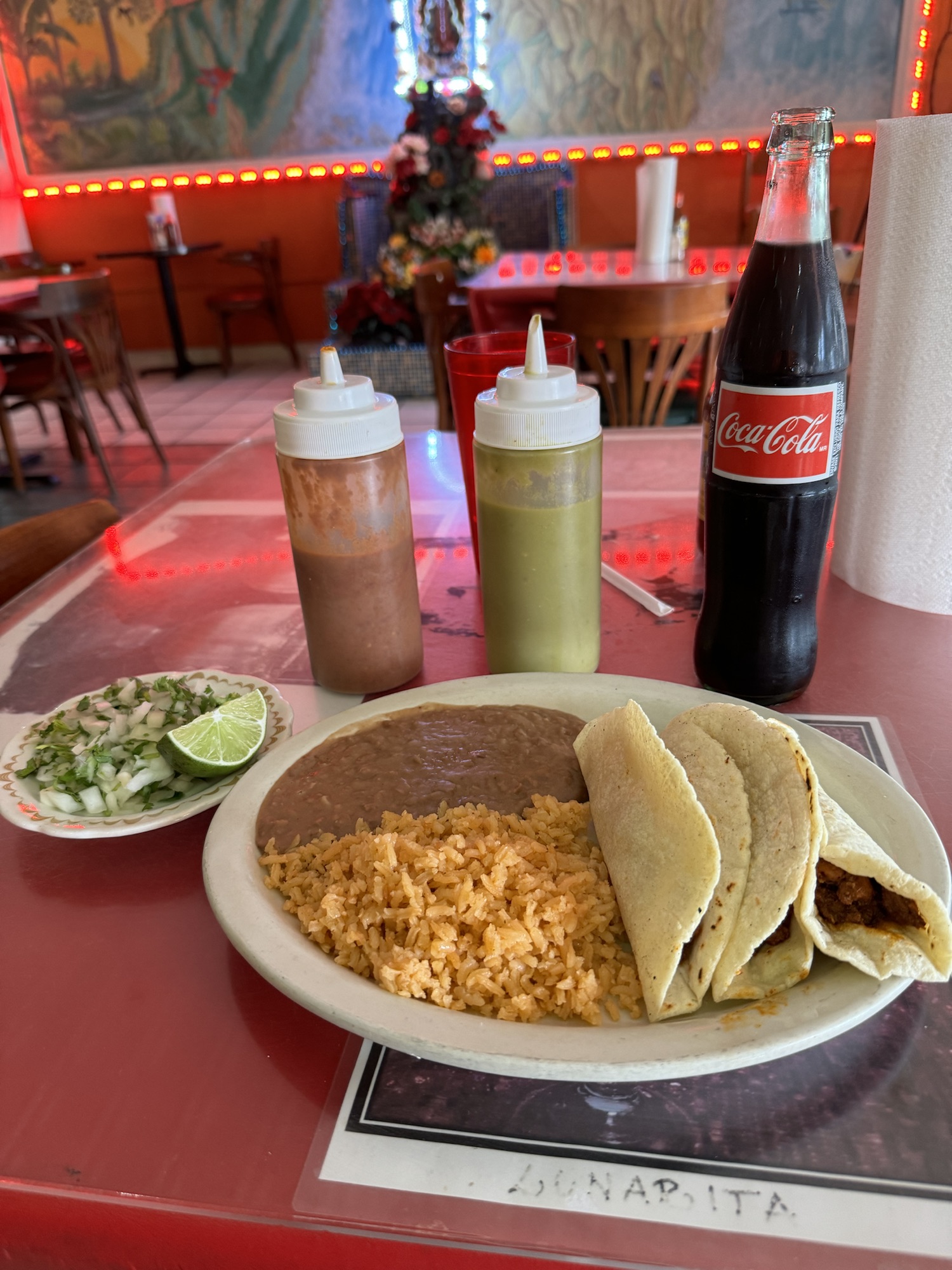 Review: This is a cute little spot on South Beckley Ave. They had a little shrine to Mother Mary in there. I ordered the taco plate with al pastor meat. The meat was so so, but the homemade corn tortillas were really good. The salsa was great as well. I wish I’d have tried more meats, but you could only get one in the taco plate.