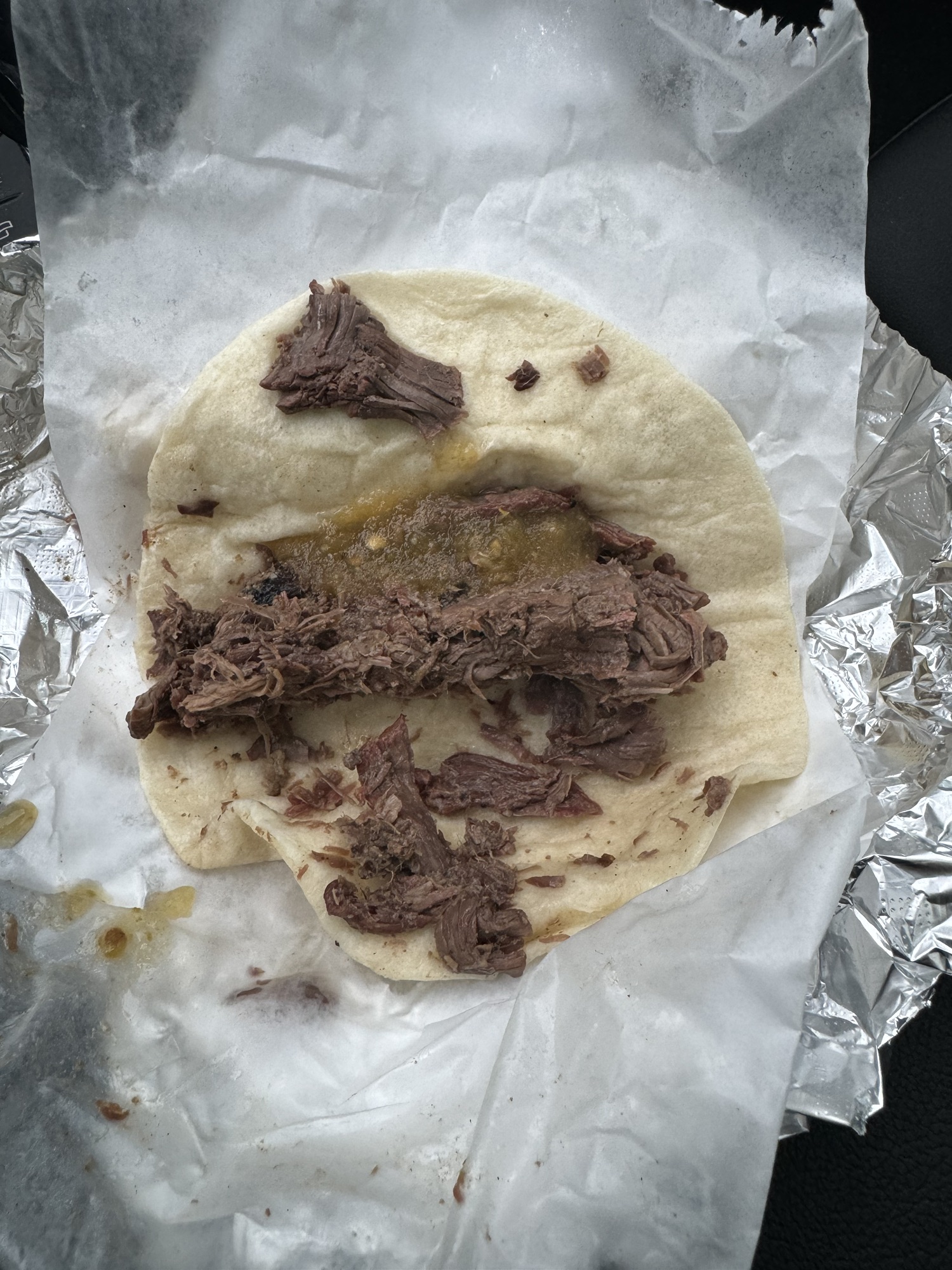 Review: A friend of mine told me about this place. She said back in her “hoodrat” days, she’d get tacos here and to this day, she always has fajita tacos on flour tortillas because of how good they are. I obvious had to try them. They’re sold at a counter in a little market in West Dallas, the sign out front claims that they have the “Best Fajitas in West Dallas.” I have to say, they were pretty dang good. The flour tortillas hit the spot; hot, fresh, hearty, and almost melt-in-your-mouth good. The meat was very good too. They did not come with cilantro and onion, however. They salsa could use a bit more spice too. Overall though, very good and a place I think y’all need to visit!