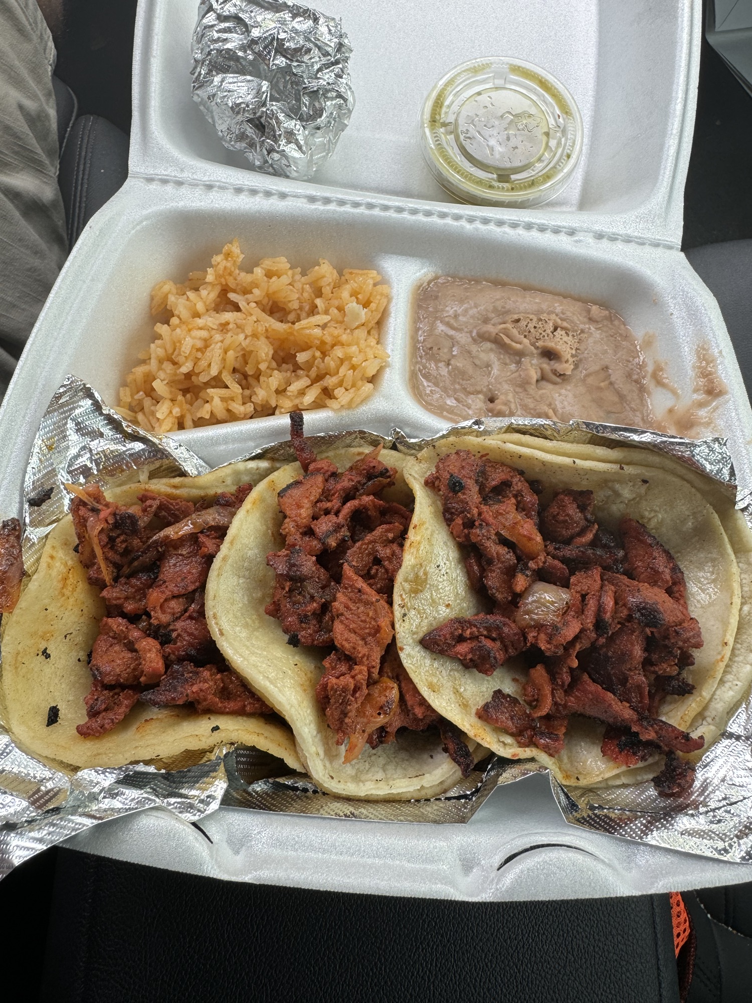 Review: Clearly not a place that specializes in tacos, I tried them anyways. I ordered tacos al pastor. They had a couple of other meat options but wouldn’t let you mix and match. Overall the meat was decent. The tortillas were your basic corn variety and greasy like most street tacos. The green salsa was OK but not very spicy.