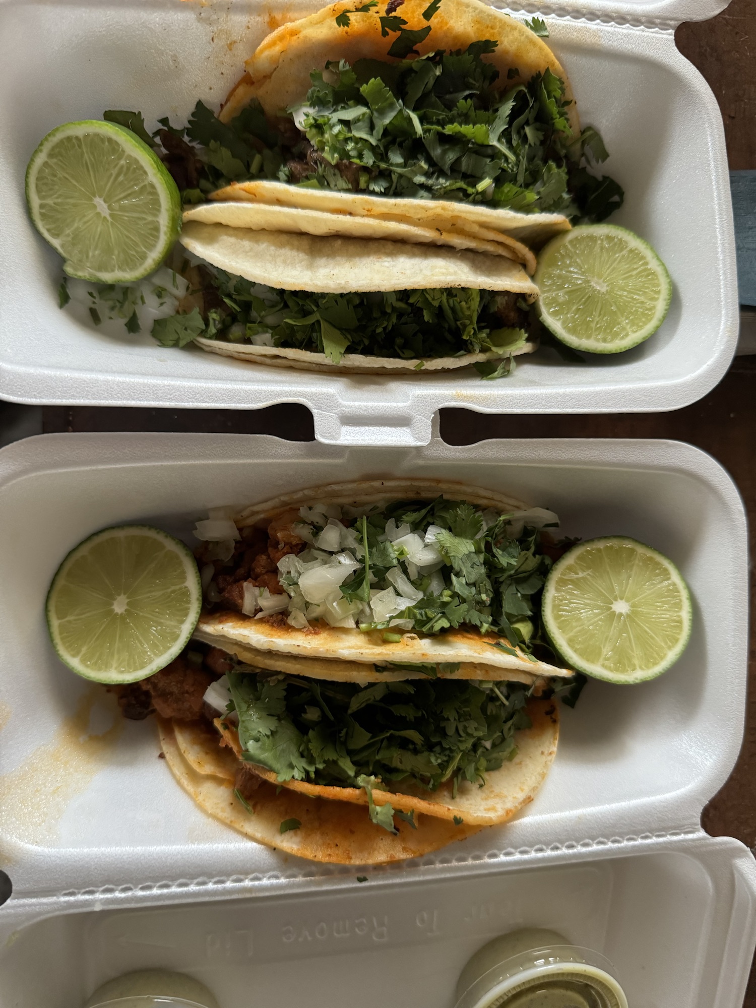 Review: I’ve driven by this place several times, but was never sure if they had tacos. I decided to pull in and check it out. It is a very small place and they barely speak English so ordering was a challenge! They’ve got a pretty extensive menu, but seem to mostly do elotes, tamales, and other snacks. I ordered al pastor and bistec tacos. They came on your standard corn tortillas and with cilantro and onion. The green salsa was very good.
