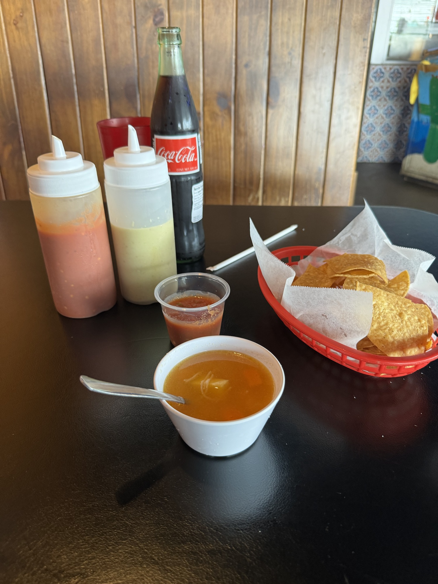 Review: I’ve driven by this place a lot. I asked a friend about it the other day, and he said to maybe try it for lunch because I guess it’s more bar than restaurant at night. I had great service and the taco plate came with a cup of fideo soup. I got barbacoa, carnitas and al pastor tacos. They meat was solid but the corn tortillas were kind of dry. I did enjoy the salsas and the chips.