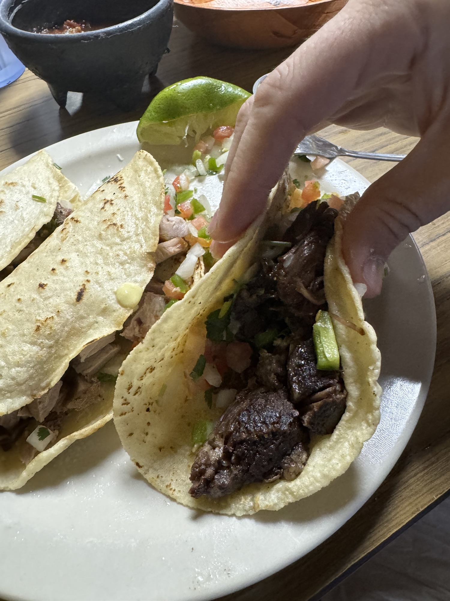 What I ordered: Tacos (barbacoa, carnitas, and beef fajita)
