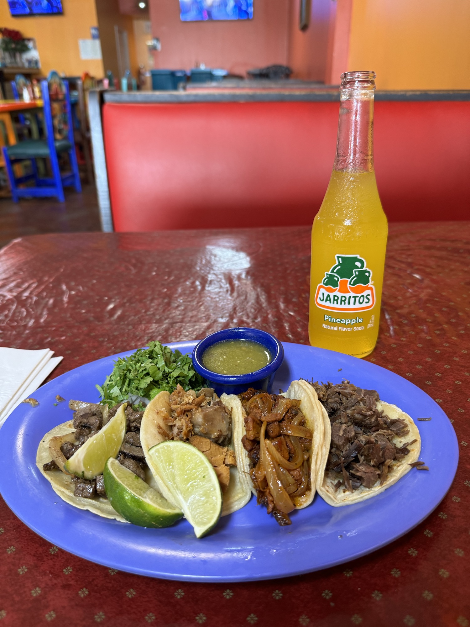 Review: This was a quite little place (maybe because I went on Memorial Day). I had some trouble ordering at first, but eventually got 4 tacos: pastor, barbecoa, carnitas, and beef fajita. The meat was good and so too was the salsa. Pretty normal tortillas, but everything was good. Enjoyed the salsa for the chips and salsa, but the hot sauce was a bit better. I wish I had a little bit more.