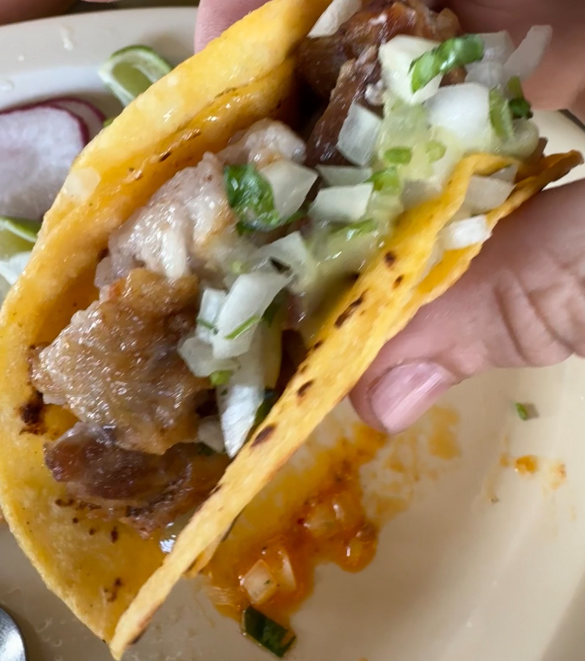 Review: This is a solid place up north with a variety of menu options. The meats were solid. I enjoyed the carnitas best. Although the tortillas were pretty standard yellow corn, they were cooked really well, which add some nice flavor and texture. Both the red and green salsas were good as well. Overall a solid spot.