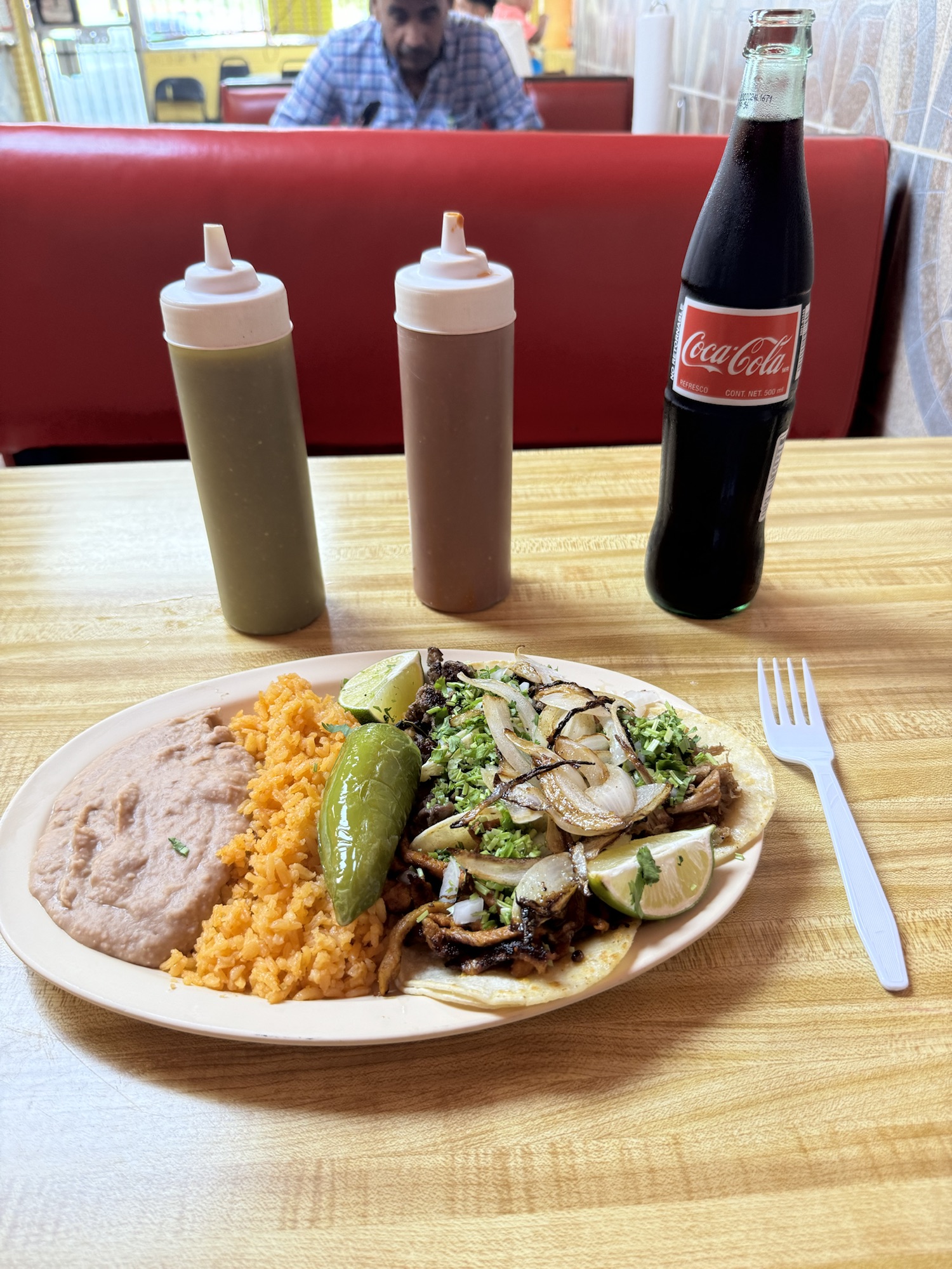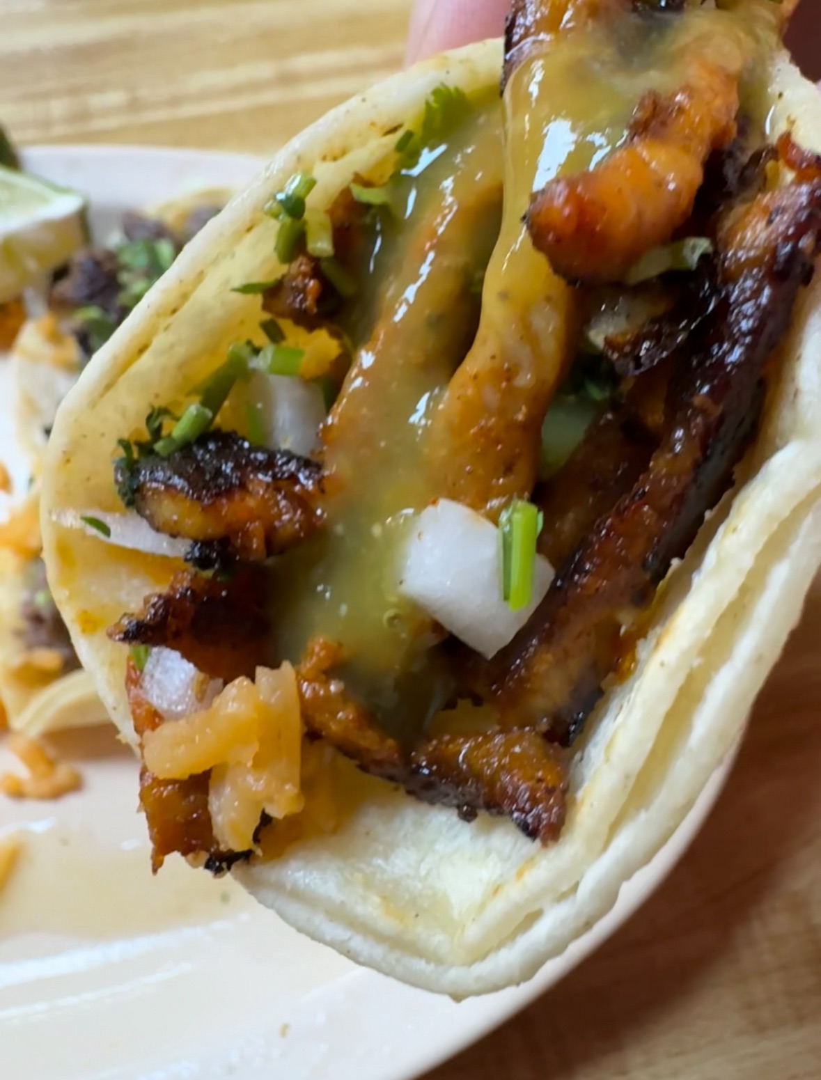 Review: This place passes the vibe check. It’s an old drive-in turned into a little Mexican restaurant. I had a few tacos, with barbacoa, bistec, pastor, carnitas. The meat was good and flavored well. The tacos had onion and cilantro plus some grilled onions. They had solid tortillas cooked well. Spicy and flavorful red and green salsa. Overall everything was really good.