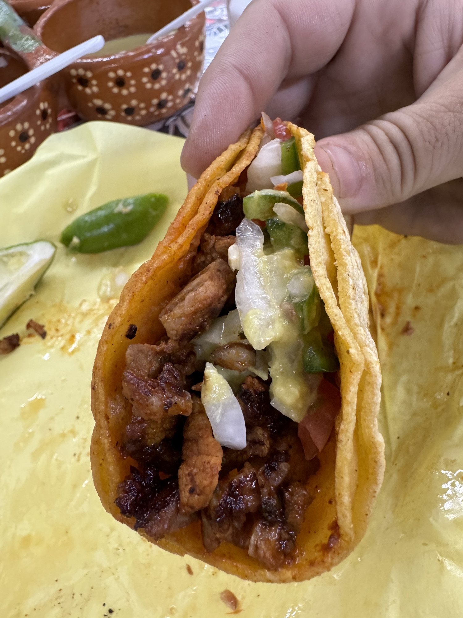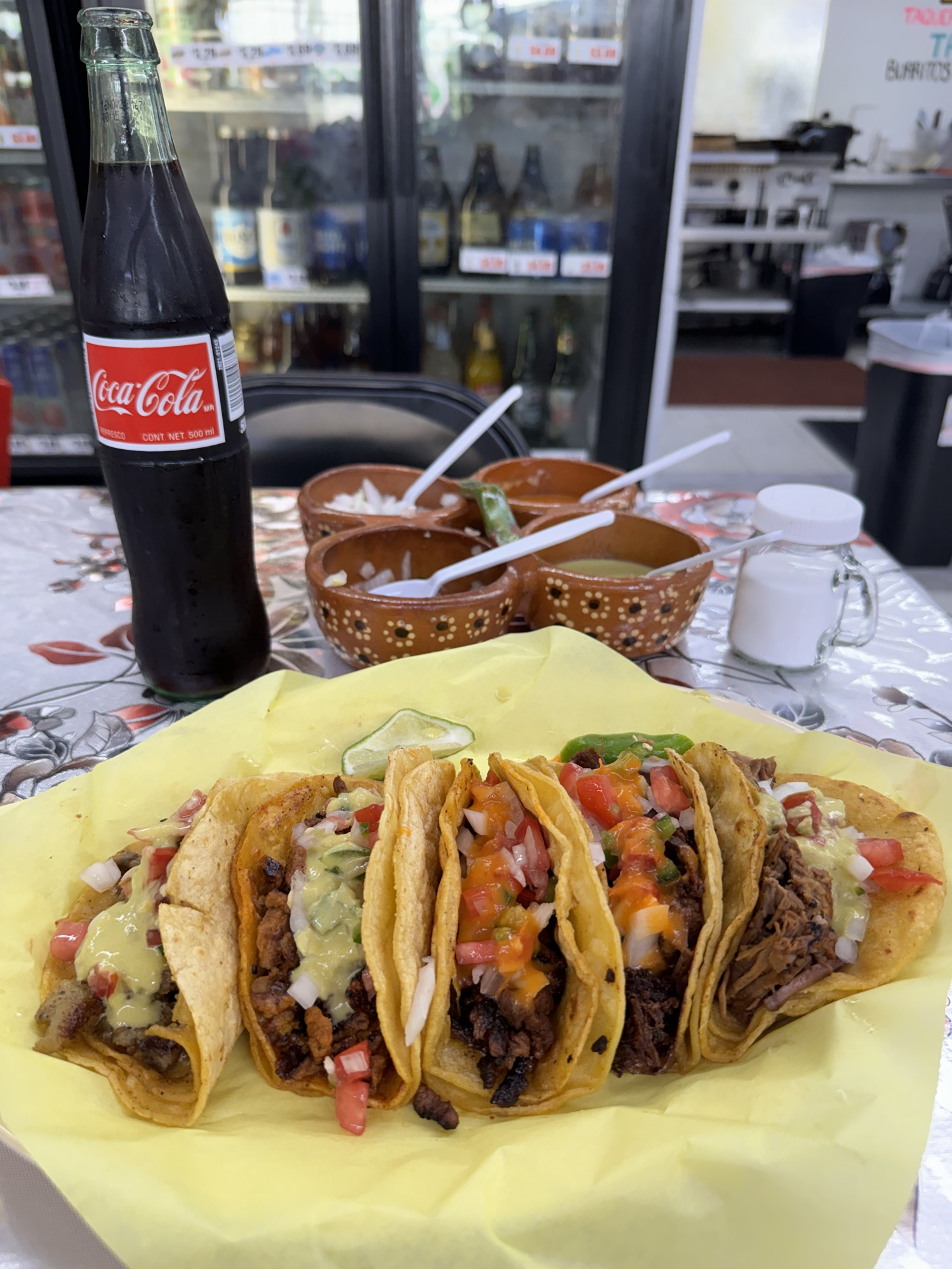 I wanted to try so many things but ended up just getting tacos (five of them though). I tried the barbacoa, pastor, and carnitas (my usual staples) plus fajita and asada. I’m fairly certain the tortillas were homemade. I saw him take them out of a dish and cook them. They were definitely delicious and had a nice brown grill to them from the flat top. The meats were also fantastic — tender yet crisp on the edges. They were also well marinated and flavored. The tacos came with a dish that had four bowls — one of onion, one of pico de gallo, one of red salsa, and one with green salsa. There was no cilantro, but the spice was enough that you don’t need it. I really enjoyed the salsas, although they were a bit runny. Overall really good flavors and a friendly hole-in-the-wall vibe. Truly a hidden gem.
