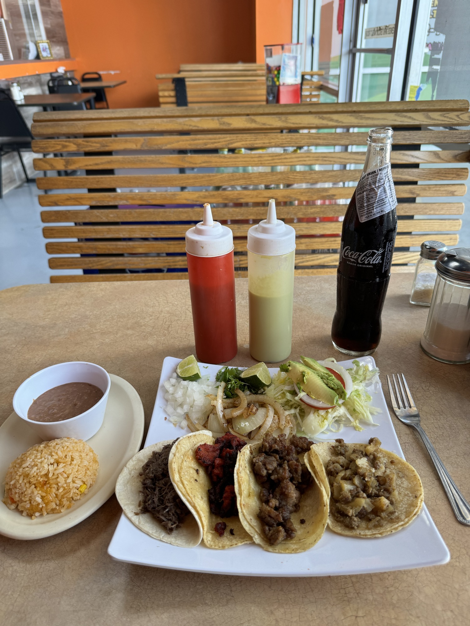 What I ordered: Tacos (pastor, bistec, barbacoa, picadillo)