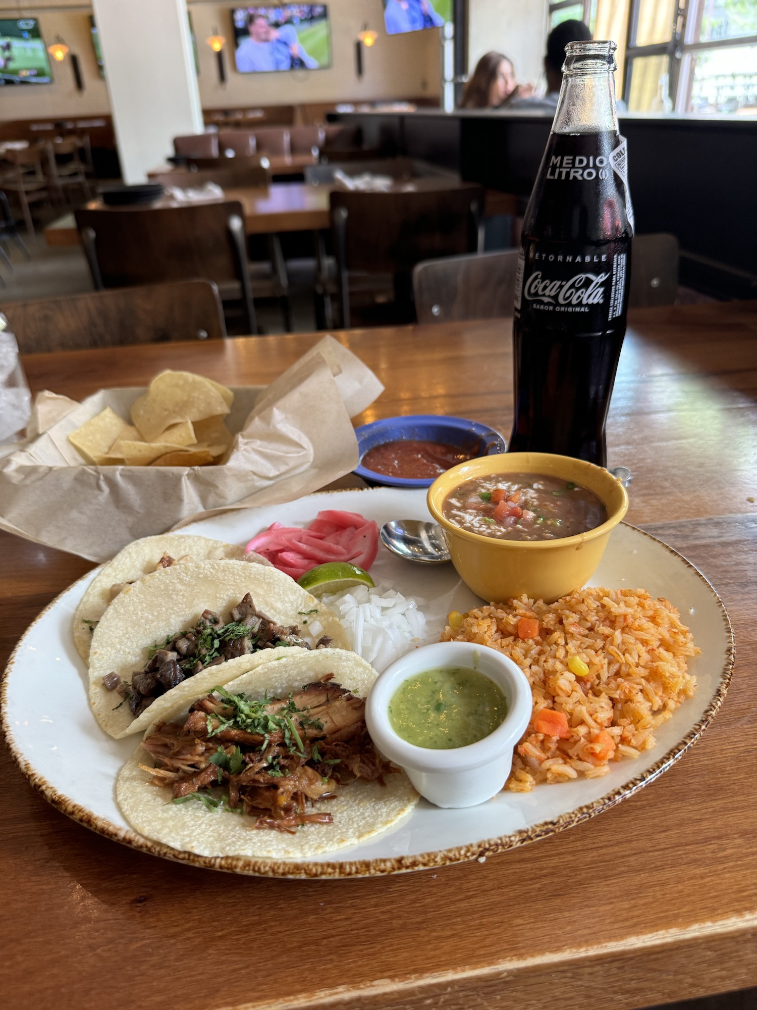 Review: Located in Uptown this place was in a sort of bar area. They mentioned that the tortillas are homemade on the menu but they could be cooked a bit more. I got carnitas steak and chicken street tacos. The meats were good with nice flavor to them. I wish I had some spicier salsa