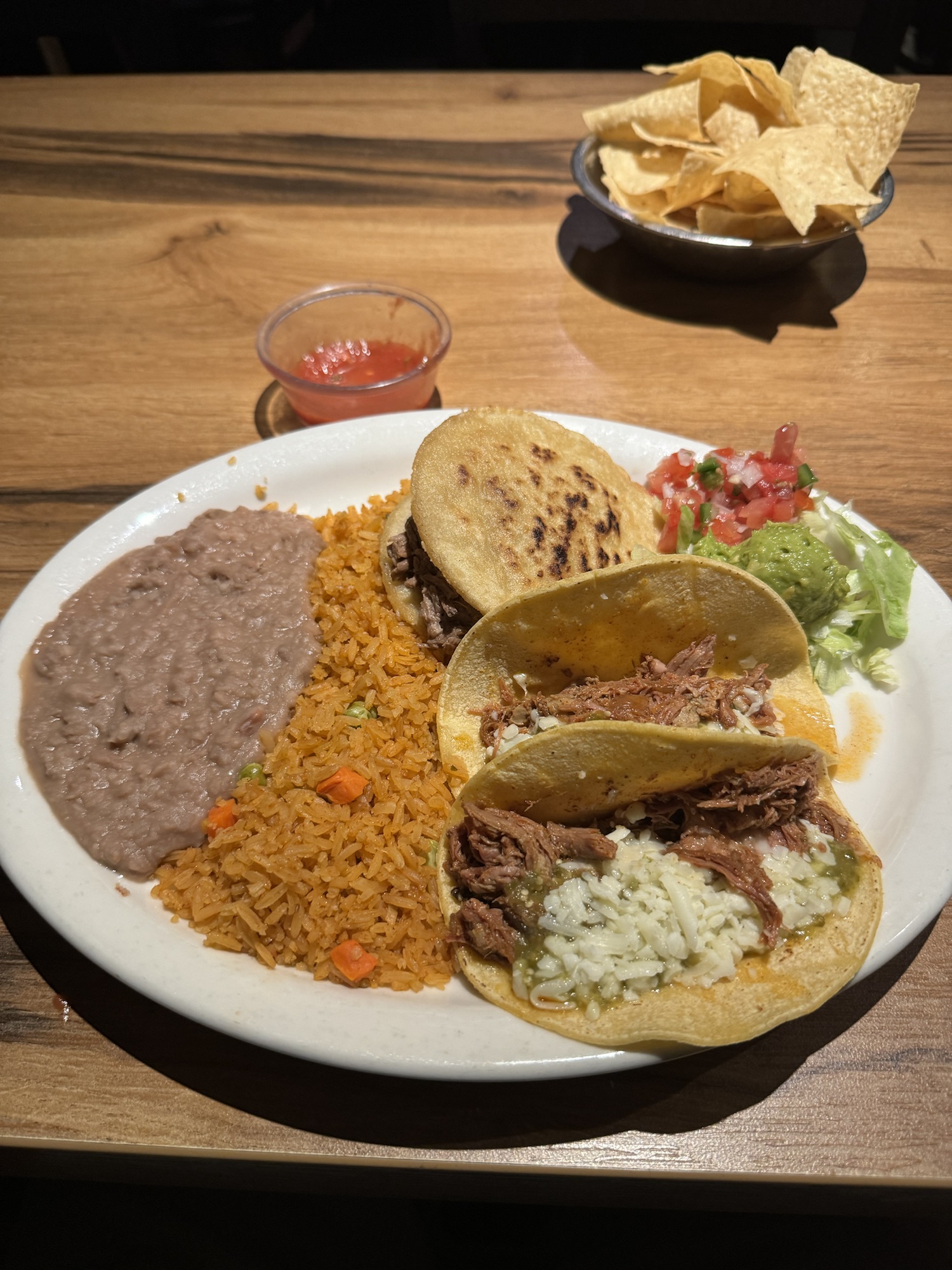 Review: This is a long time Dallas staple. I ordered carnitas tacos and a brisekt gordita. They had really good flavor on the meats. The tacos had some cheese on them and decent spice. There was a nice crunch and thickness to the gordita. Decent tortillas. I wish I had some hot salsa; I just used what was provided for the chips.