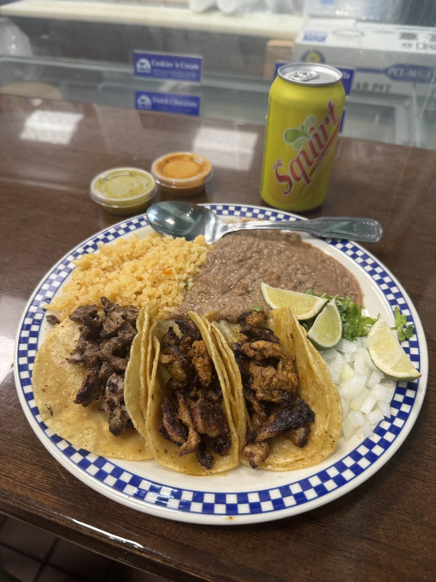 Review: I’ve driven by this place quite a bit but didn’t know they also had tacos until I saw someone post about it on Instagram. I ordered the taco plate with beef fajita and pastor. They had solid meats. The pastor was the better of the two. I found the tortillas to a bit overcooked too which made them kind of crunchy. The hot sauce was pretty good.