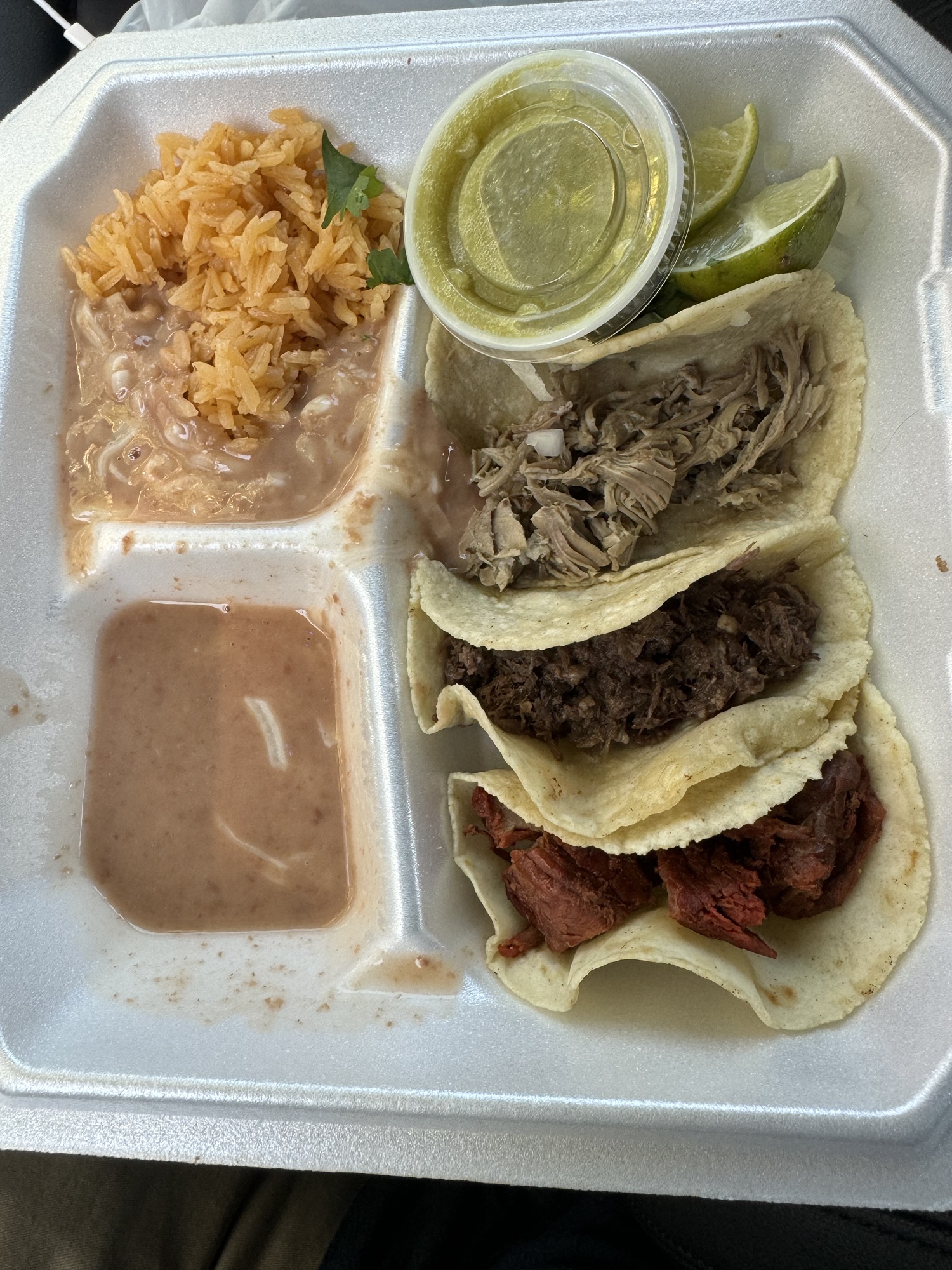 Review: I’ve been looking for a place in the South Dallas area and finally found this spot. It’s window service so everything is togo, but they do have some picnic tables to sit at as well. I ordered a barbacoa, carnitas, and fajita taco. The meats were solid. They came in homemade corn tortillas. They had really good and spicy green salsa.