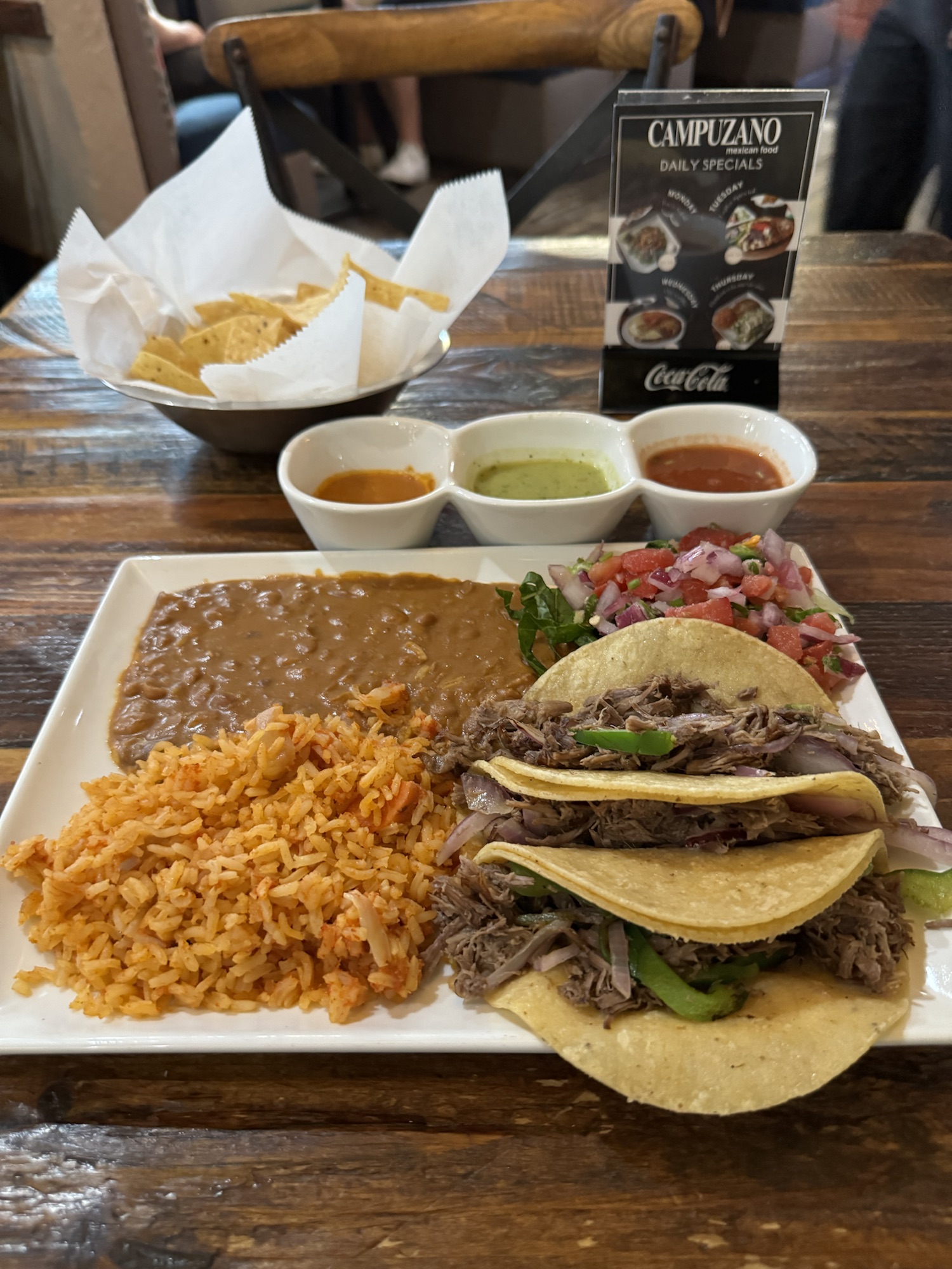 Review: This is a little place over in the Oak Lawn area. I stopped in for dinner and ordered the brisket tacos. They had a few meat options but they were recommended by the server. I got them without cheese. The brisket was solid as were the corn tortillas. It’s become a common refrain but I would have liked a bit more cook on the tortillas, but they held up. The tacos came with pico de gallo on the side for topping them. I did get 3 salsas but they were from the chips. I liked the salsa but I did have a spoon to dish them onto my tacos.